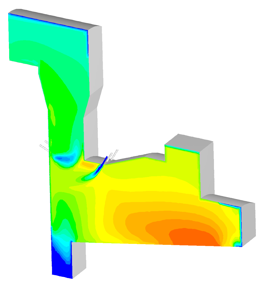 Stromlinien in einer Mittelstromfeuerung mit Düsenbalken